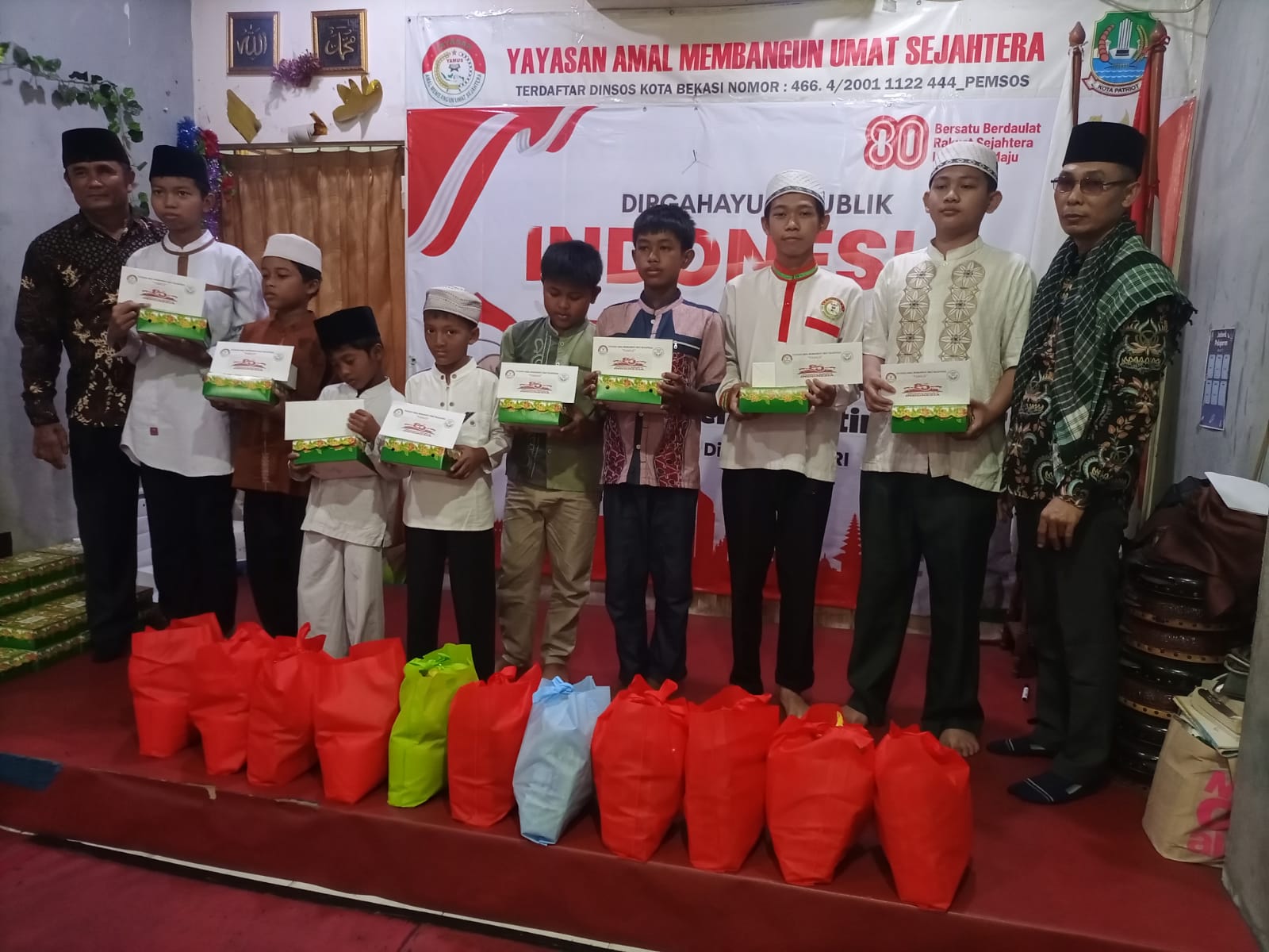 Sejahtera News, Bekasi, 31 Agustus 2025 Yayasan Amal Membangun Umat Sejahtera kembali melaksanakan kegiatan rutin dalam bentuk santunan bulanan untuk anak-anak yatim piatu dan dhuafa yang mereka bina.